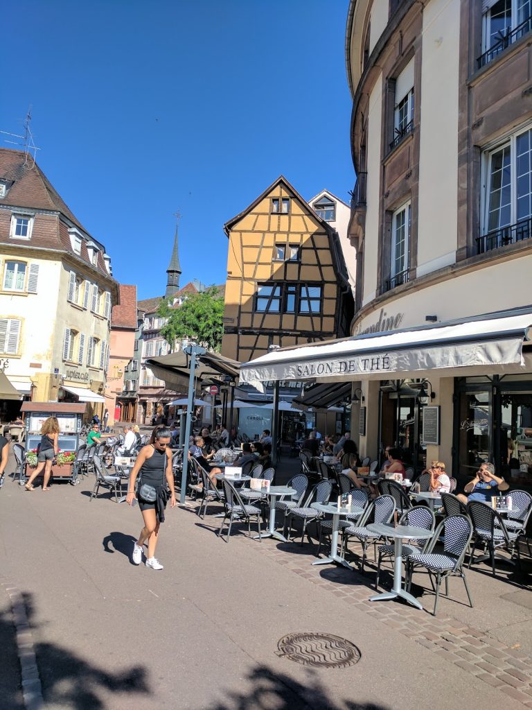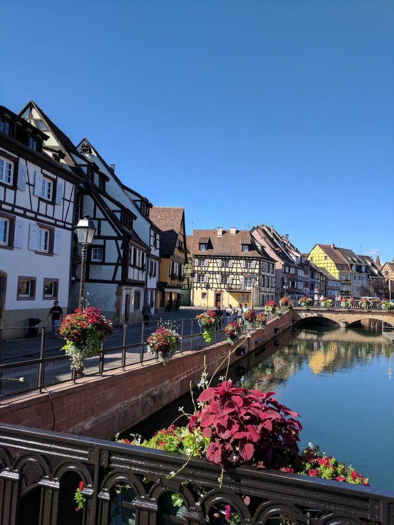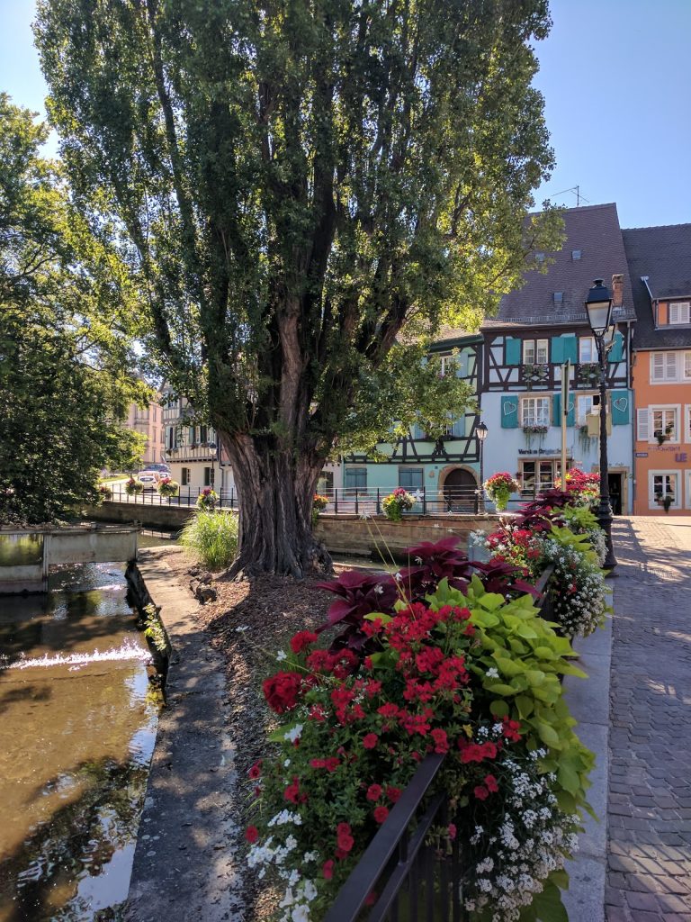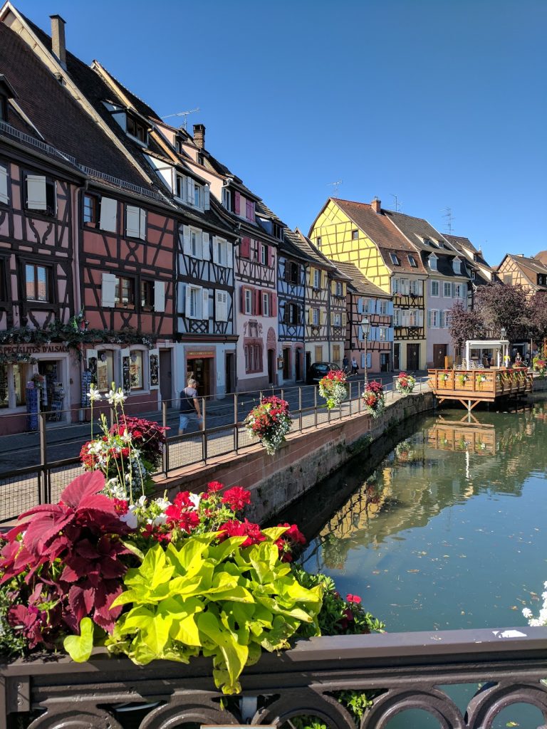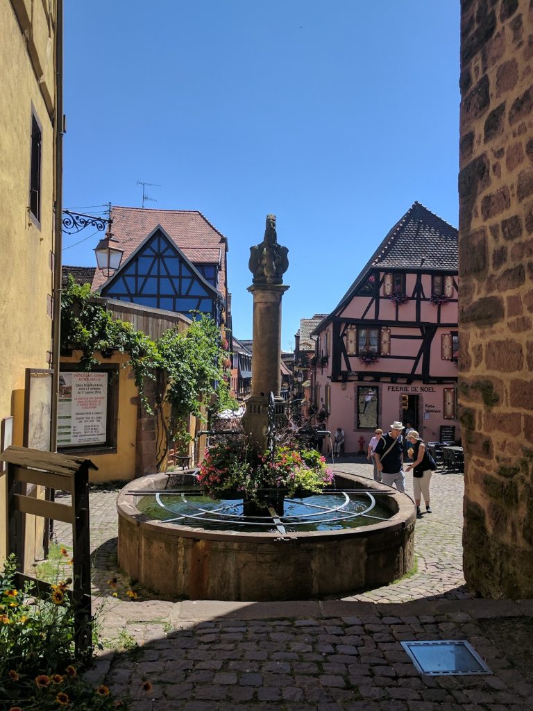 Today was a long day as we wanted to go to the Alsace wine region, and in particular to visit two towns that were the inspiration for Belle’s town in Disney’s Beauty and the Beast, Riquewihr and Ribeauville. We started by catching the 8 am train from Zurich to Basel. We then walked to the second station in Basel to catch the transfer train to St Louis on the French side of the border. We then caught the Alsace Wine train to Colmar. We had seen nice pictures of Colmar, so we wanted to explore.Turns out the station is about a kilometer away from the old town, so we started the day with a long walk. When we finally got there though, it was worth the effort. Colmar is beautiful.