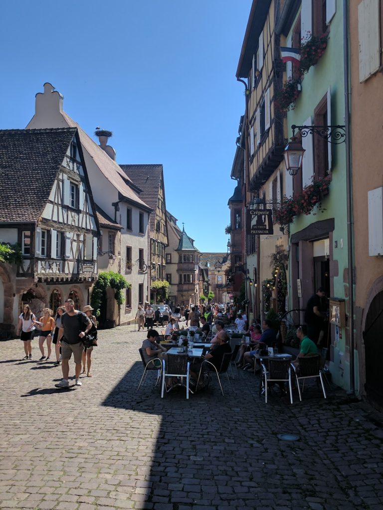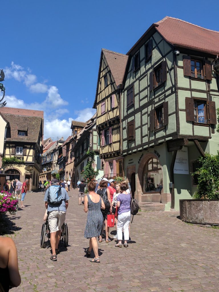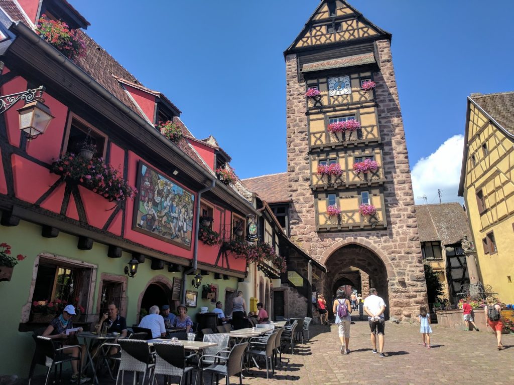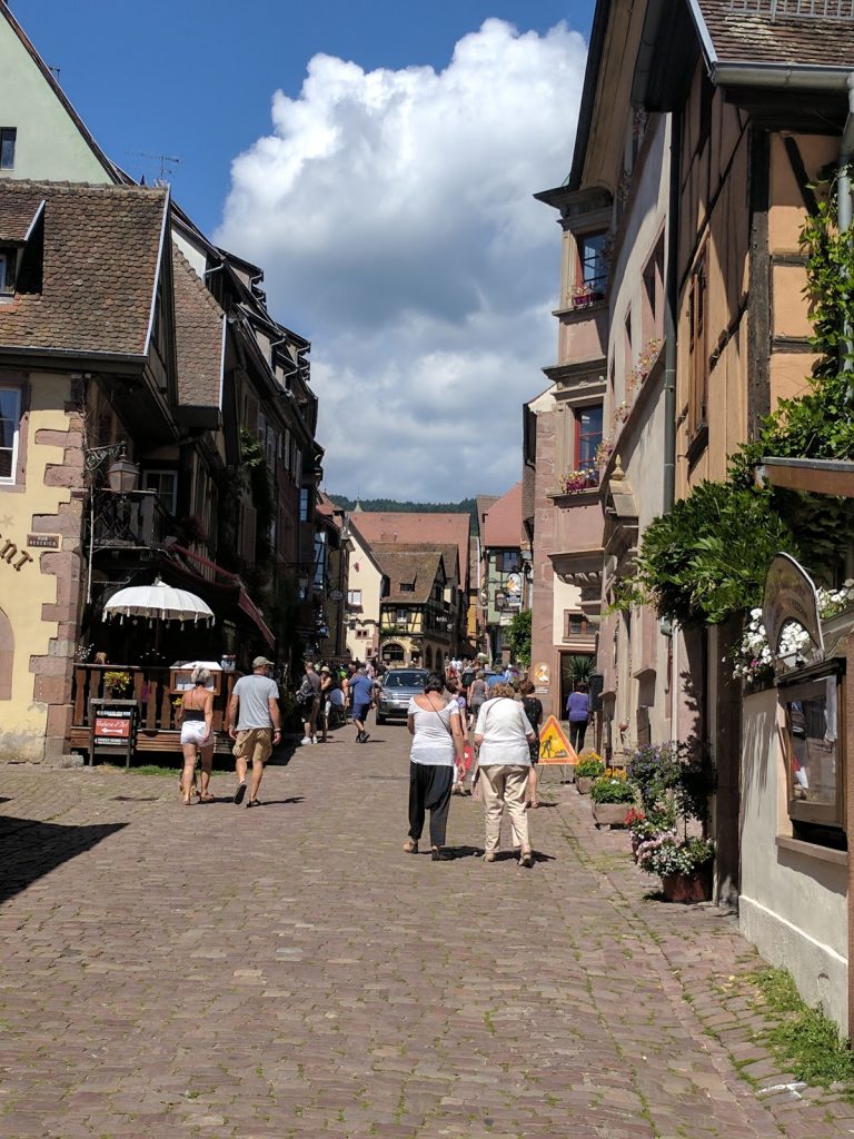 We finally found the bus stop and soon after the bus came to take us to Riquewihr. The Alsace countryside is beautiful and green, full of vineyards and country houses. We arrived in Riquewihr after about half an hour and stepped into the 18th centrury!