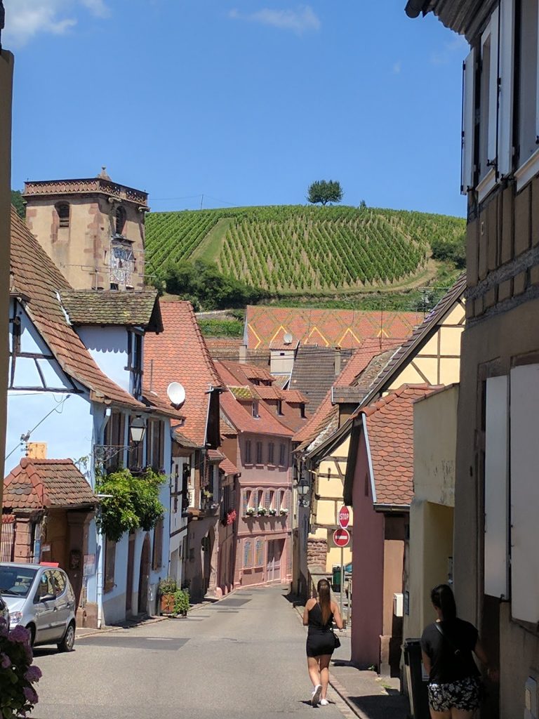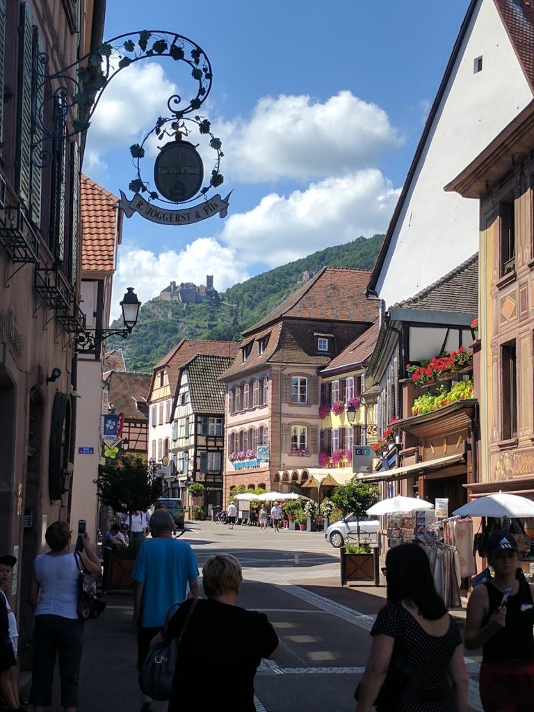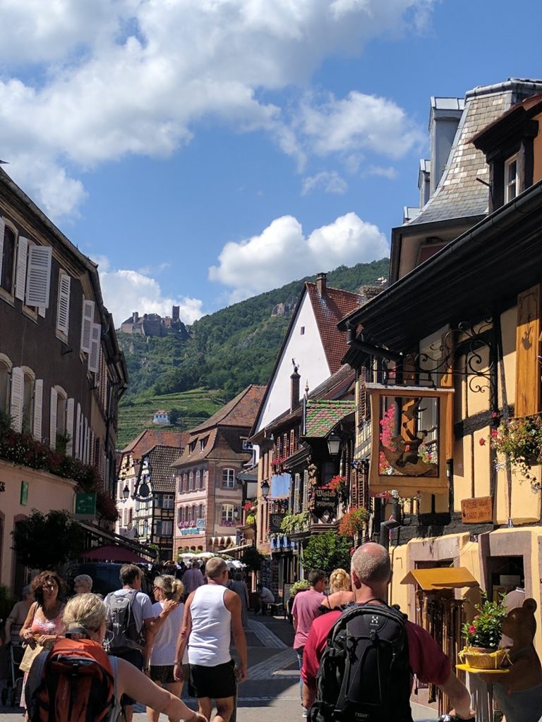 We walked through Hunawihr, which was nowhere near as pretty, then continued onto Ribeauville. Ribeauville is also very pretty. It has three old castles overlooking it, and the house of Joan d’Arc.