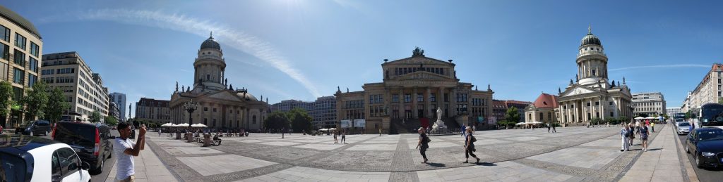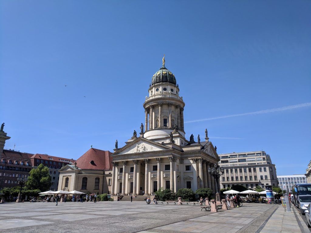 We got up this morning and after a nice breakfast of bread and danish we headed to the airport for the short flight to Berlin. After checking in to the hotel, we headed out to explore the city. We used the Metro system which turned out to be quite easy to use. First stop was the Gendarmenmarkt.