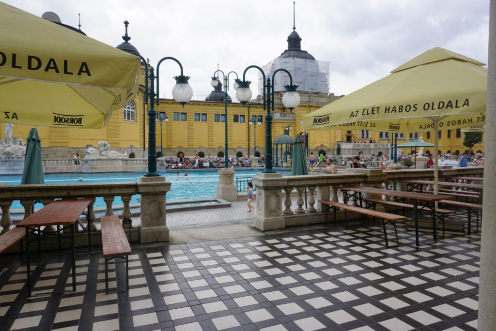 Today was a very long day! We got up early, had breakfast on the go and got on an early train to Budapest. The trip lasted about two and a half hours, so we were there before 11 am. We decided not to waste time, so we caught a taxi to the Szechenyi Thermal Baths.