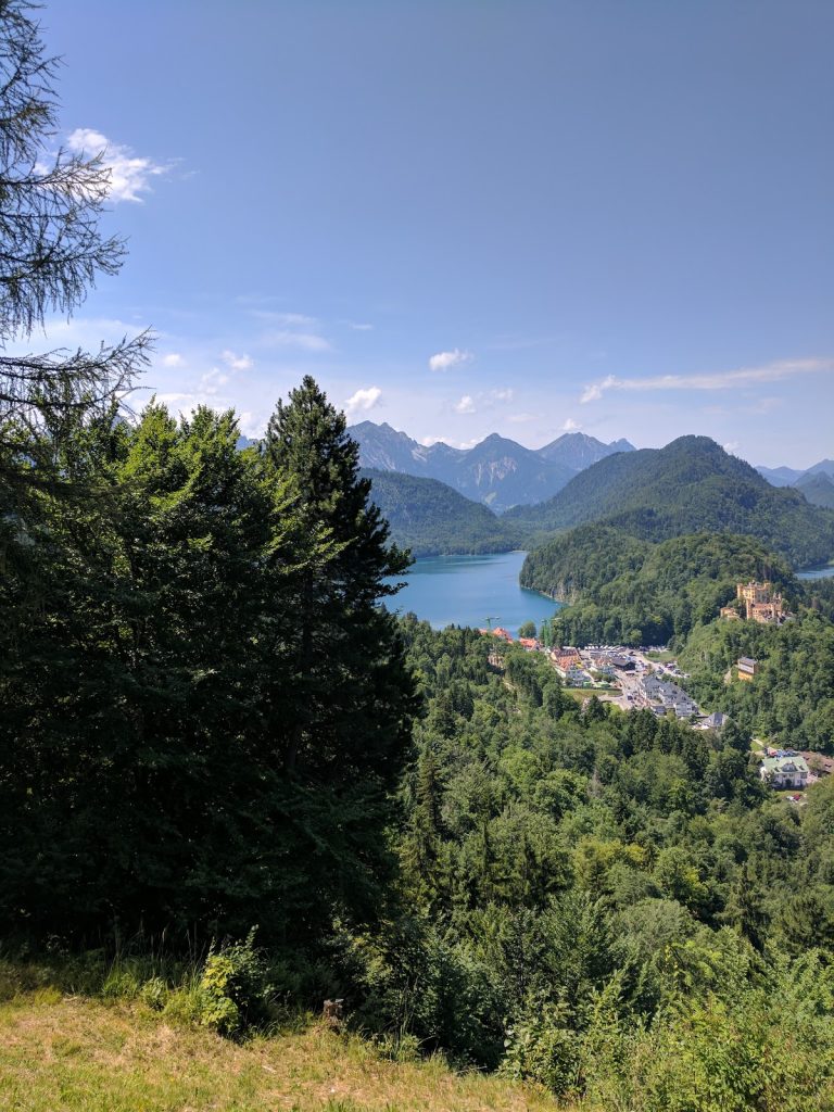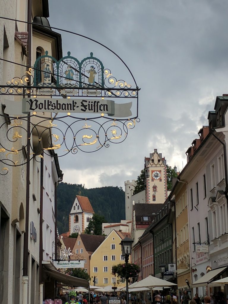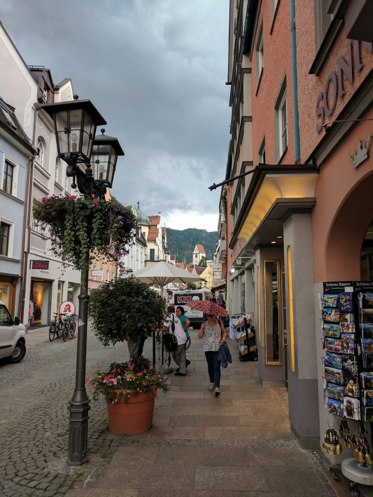 The way down was far easier than the way up, and we got into Hohenschwangau in good time to catch the bus back to Fussen. There we found a nice cafe, Cafe Bistro Relax, and had a pizza and a beer to recover from the long walks. The day was very hot until that point, but the weather was turning, and it was staring to sprinkle. We walked a little through Fussen, which was very pretty, before getting on the next train back to Munich.
