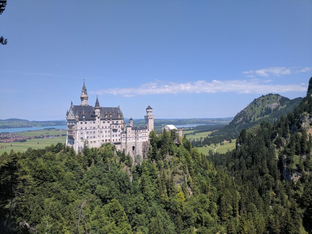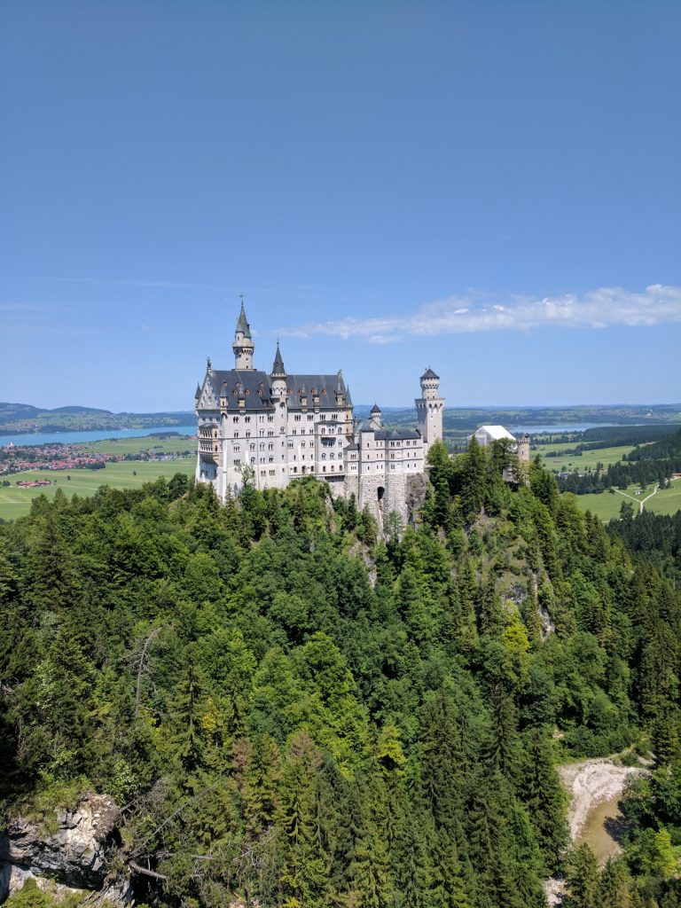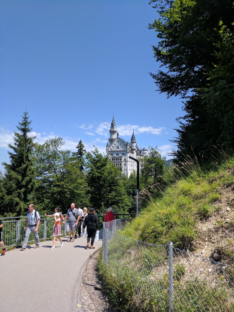 Today was a day that Chrissa had long been looking forward to – visiting Neuschwanstein Castle. We just missed the 9am train, so we had to wait an hour in Munich for the 10am train to Fussen. It took just over an hour to get there. Many tourists take this train, so when we got there, there were several buses waiting to take us to Hohenschwangau for the walk up to the castle. Not knowing how long that would take, we followed everyone else – the walk was a solid hour uphill! But when we got there, wow, what a view and what a castle!