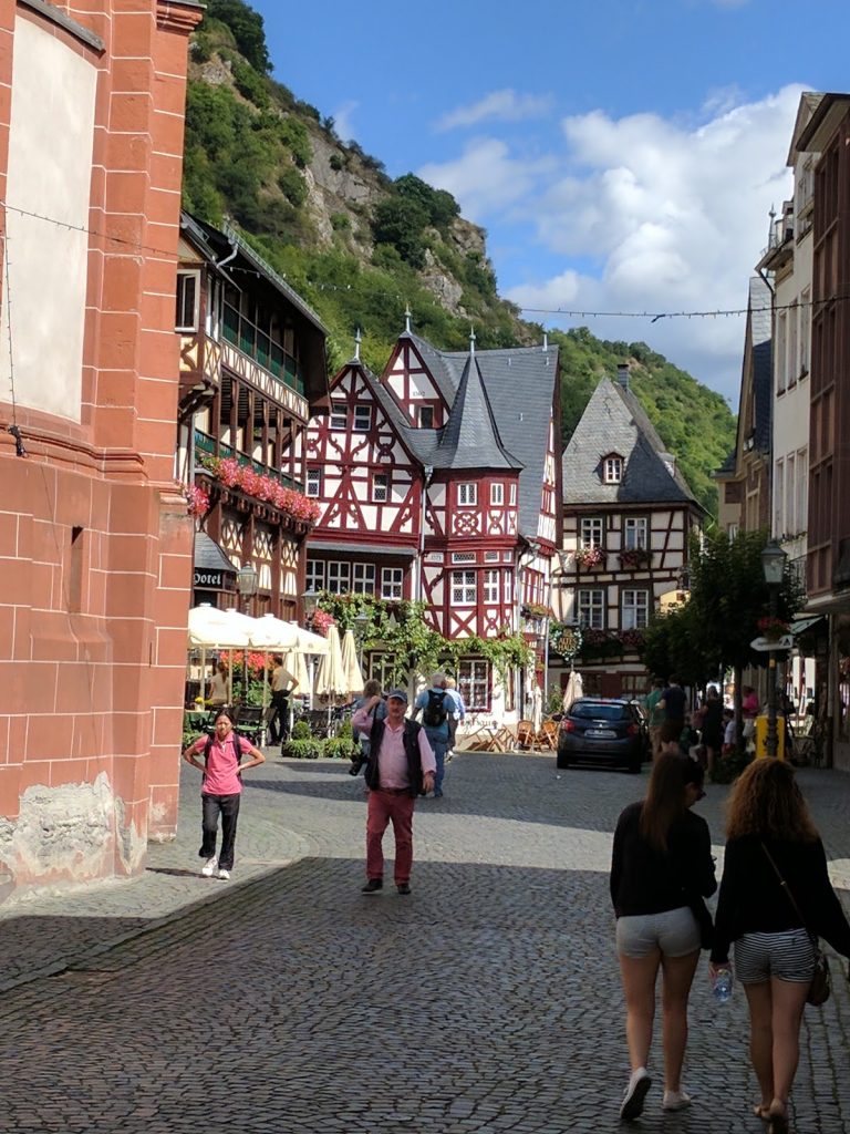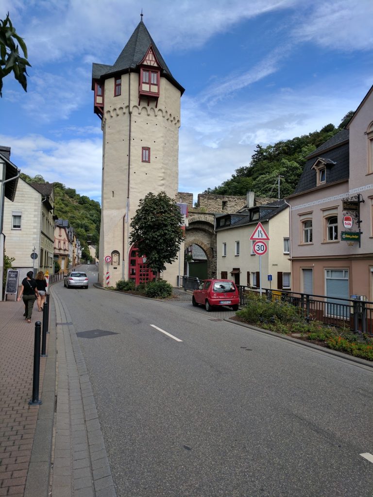 Today was another of those days that Chrissa and I had been really looking forward to for years – a trip along the Middle Rhine. After breakfast we caught the train to Koblenz, then the Middle Rhine train along the western bank of the Rhine to Bacharach. The train trip was revealing as there were castles seemingly every kilometer along the river on one bank or the other. Bacharach was quite beautiful, and typical of the towns in this stretch of the river, complete with its own castle.