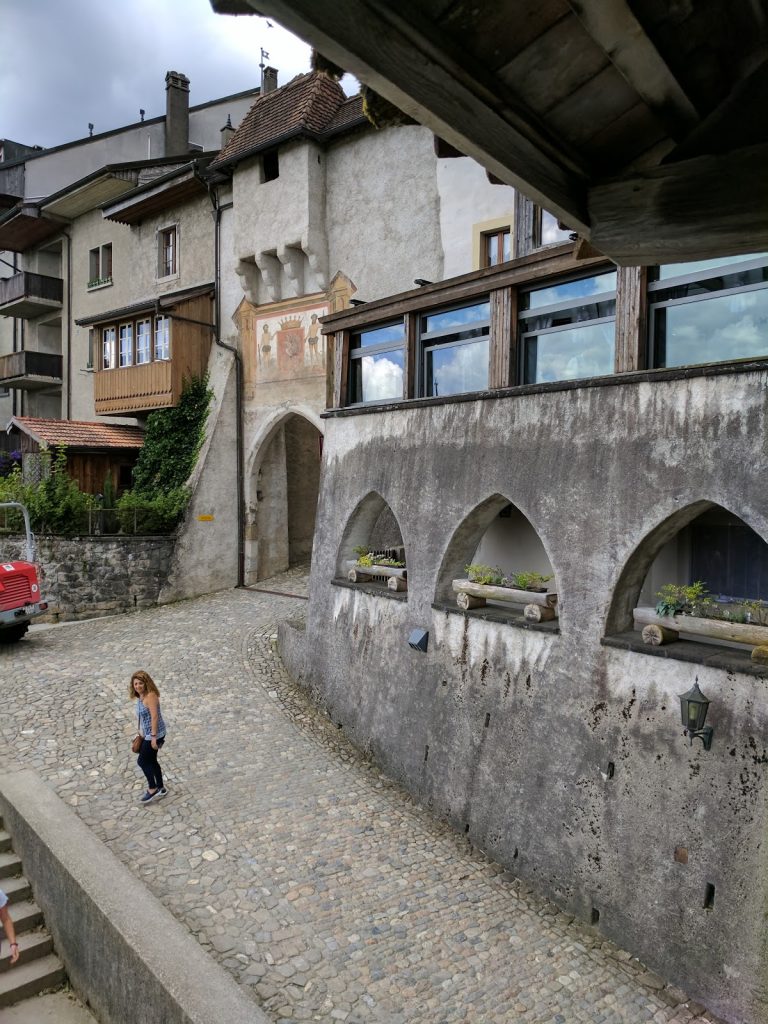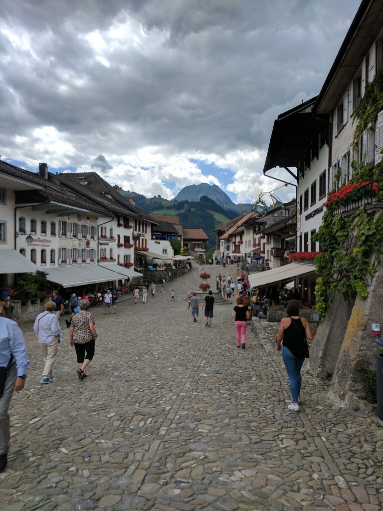 We then caught the train for the quick trip back to Montreux, and had morning tea / lunch of paninis before catching the connecting trains to Gruyeres, high up in the mountains. The scenery heading up was unbelievable. Gruyeres is an old medieval castle, and quite stunning.