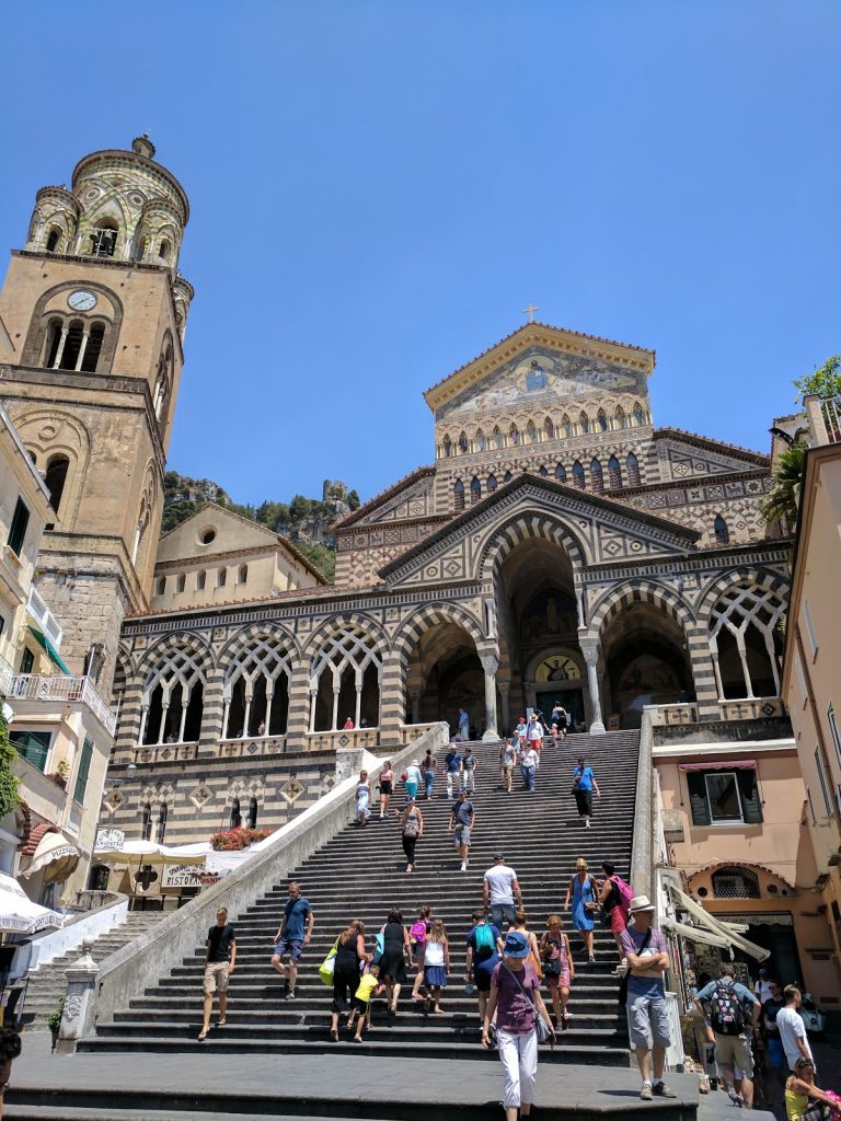 After breakfast, we decided to head in the other direction, and go to Amalfi. Having learnt how to use the buses, we caught the bus at the bottom of our street and sat back to watch the beautiful scenery of the ocean and the incredible driving on these crazy roads. The road to Amalfi runs along the coast, with a cliff on one side down to the water, and a high cliff the other side. By our standards, it is wide enough to fit two small cars. We were in a huge bus. The navigation, the negotiation between drivers, just had to be seen to be believed.